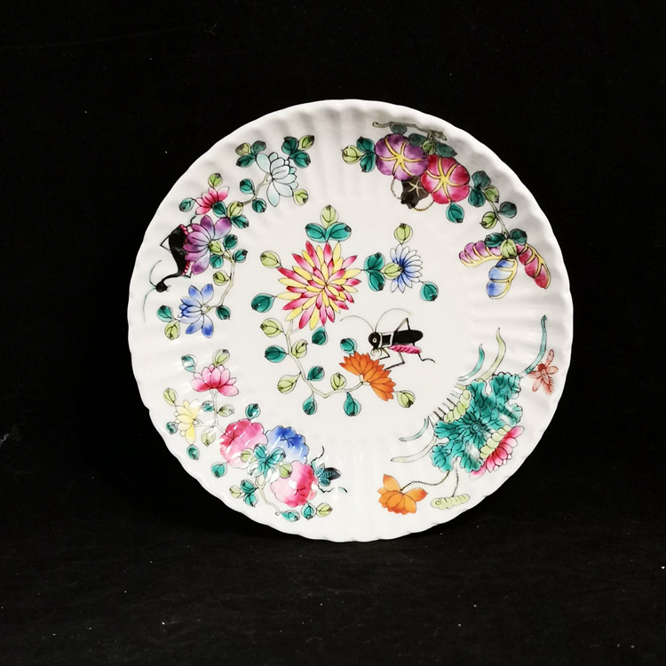 Qing Daoguangguan kiln porcelain hand-painted pastel rich and noble pot bearing tea tray melon fruit plate antique antique collection ornaments