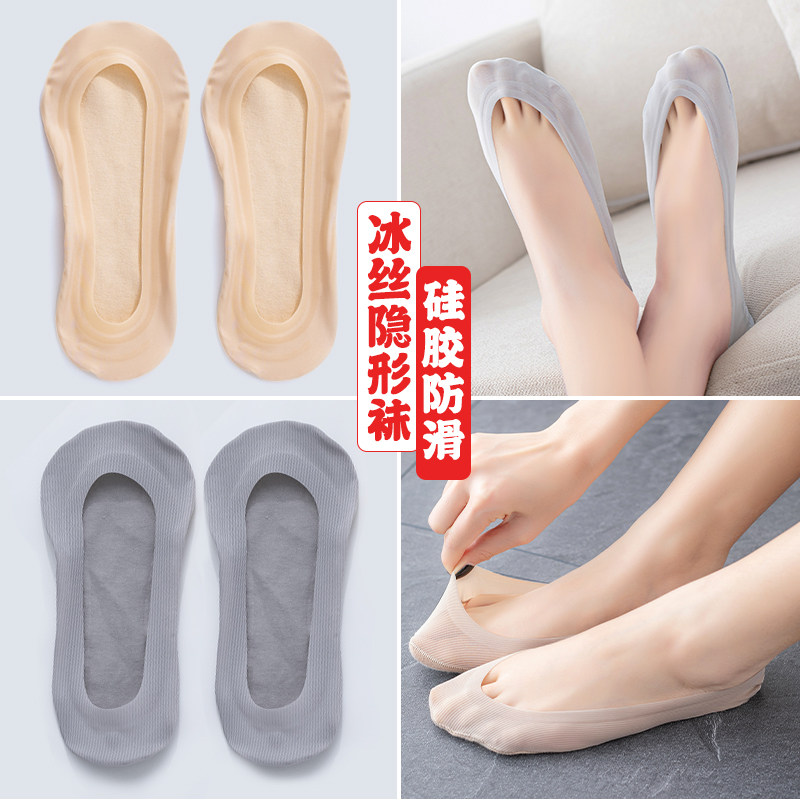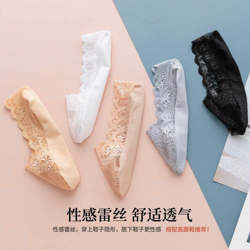 Invisible Socks Lady Ice Silk Socks Summer Thin Socks Short Socks Non-slip Anti heel Invisible Socks Summer Lace Ultrathin Women Socks
