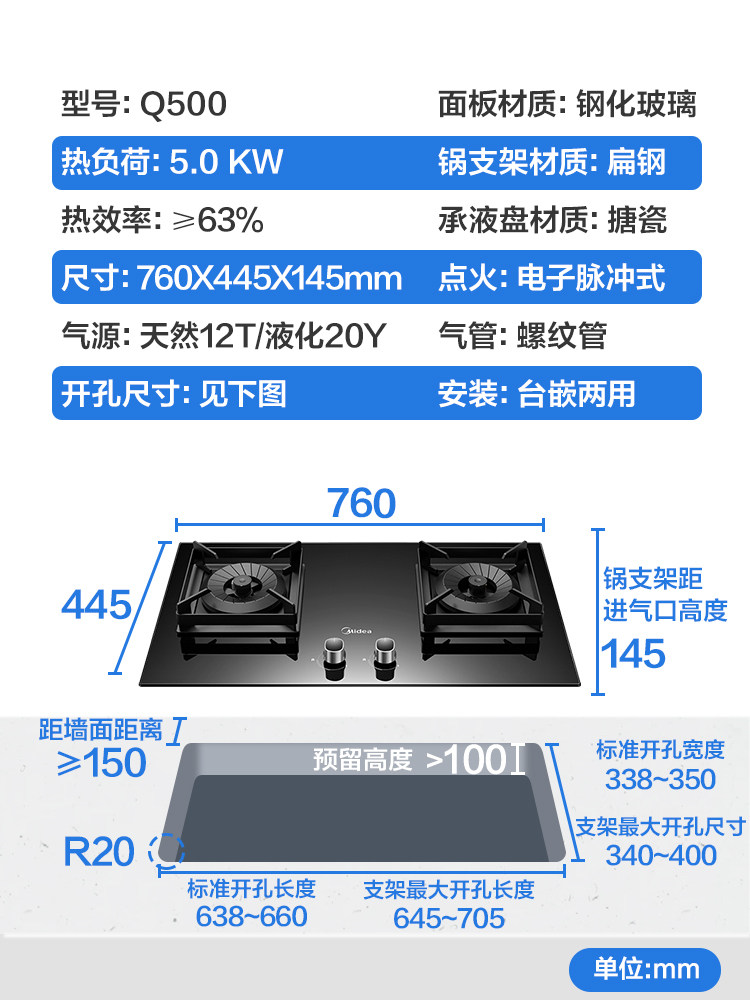 Perfect Q500 gas stove gas double-mouth gas stove Home Desktop Liquefied Gas Cooker Table Embedding Dual-use Energy