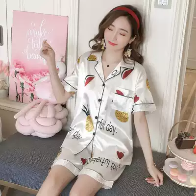 Pajamas female summer ice silk thin short sleeve two-piece Net red hot model 2021 new silk summer home wear