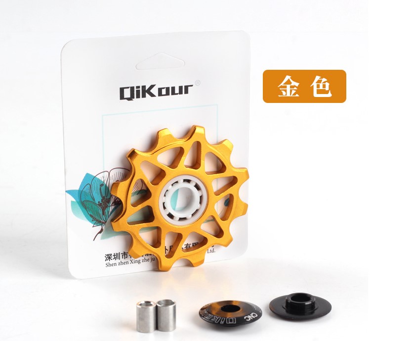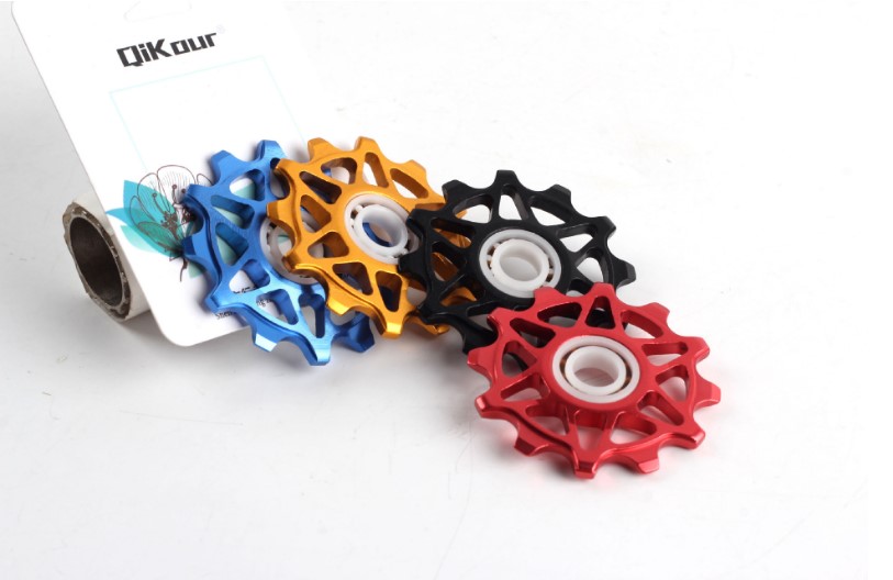 Black 12t guide wheel with 12 holes hollowed out Red 12t guide wheel with 12 holes hollowed out Gold 12t guide wheel with 12 holes hollowed out Blue 12t guide wheel with 12 holes hollowed out