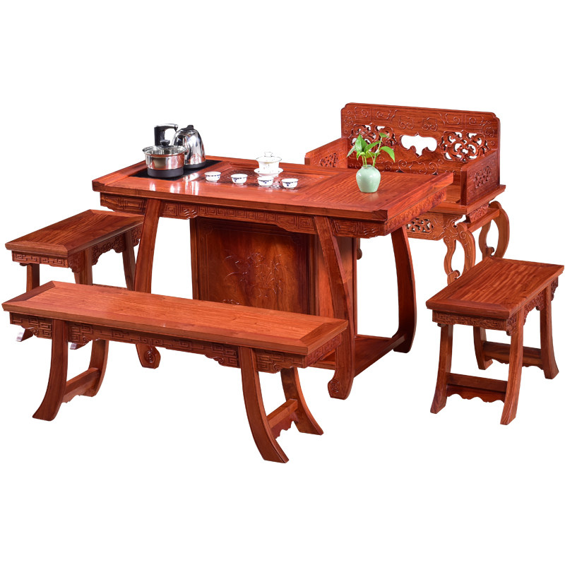 Red wood furniture Myanmar flowers pear tea table and chairs combined solid wood small bubble tea table tea table New Chinese tea table small family type