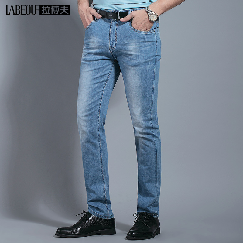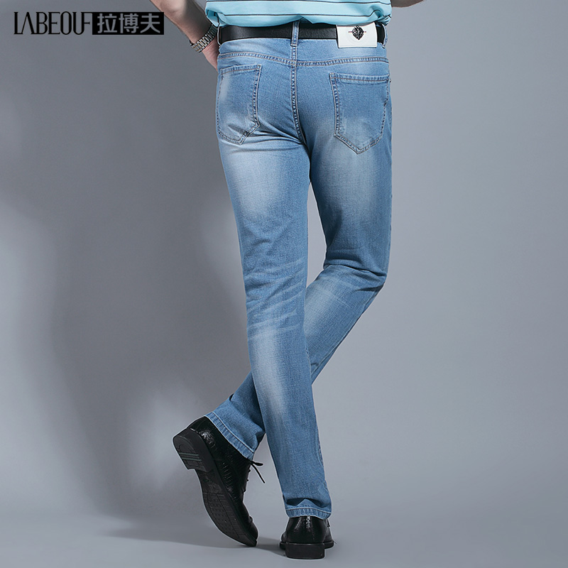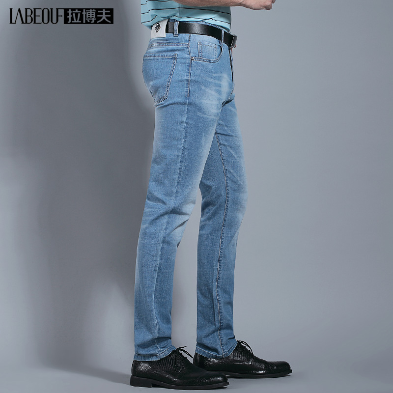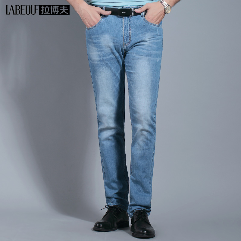 Labov spring new pure cotton jeans for young men 100 hitch business casual straight cylinder loose elastic long pants