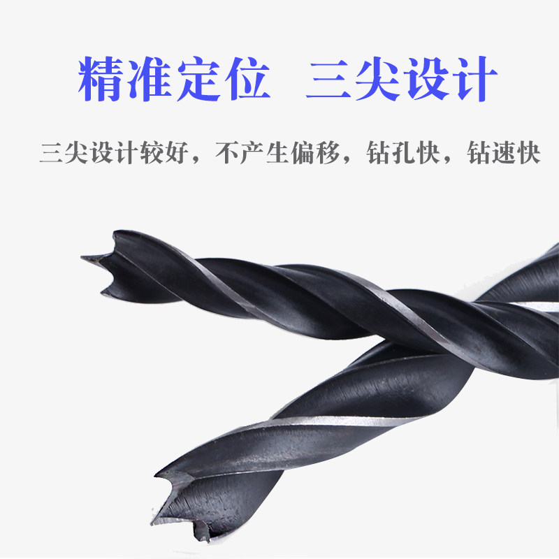 Multifunctional woodworking drill bit three-pointed drill hardwood punching twist drill bit support Luo drill drill electric drill turn head set