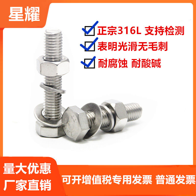 316L stainless steel outer hexagonal bolt screw nut suit large fully lengthened screw M8 M8 M10 M12-200mm M12-200mm