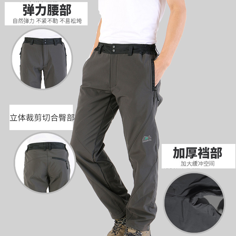 Sherpa windproof fleece pants autumn and winter outdoor waterproof mountaineering pants plus plus plush thick warm soft shell storm pants men and women