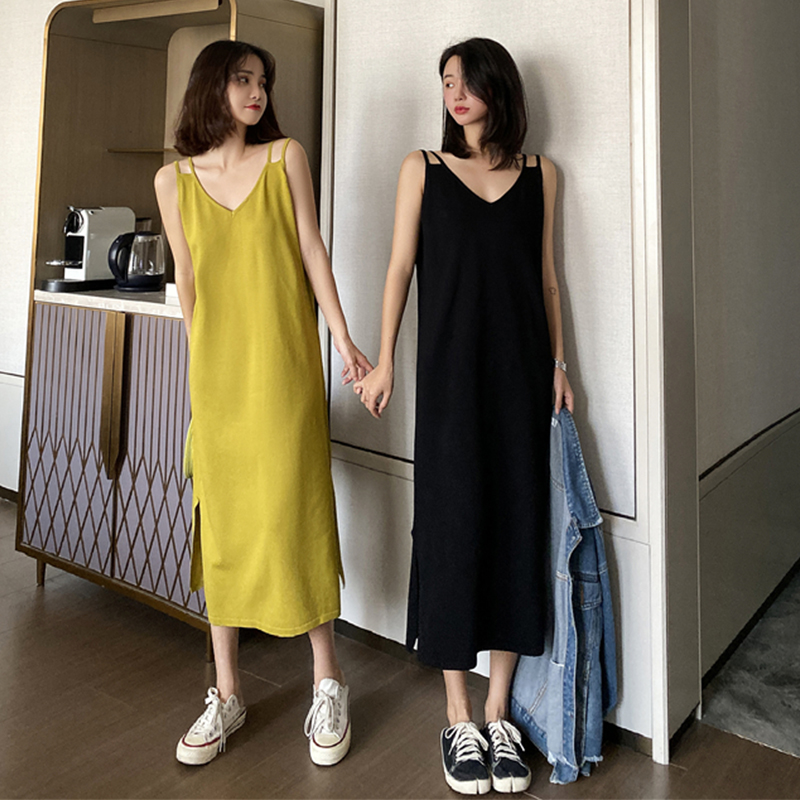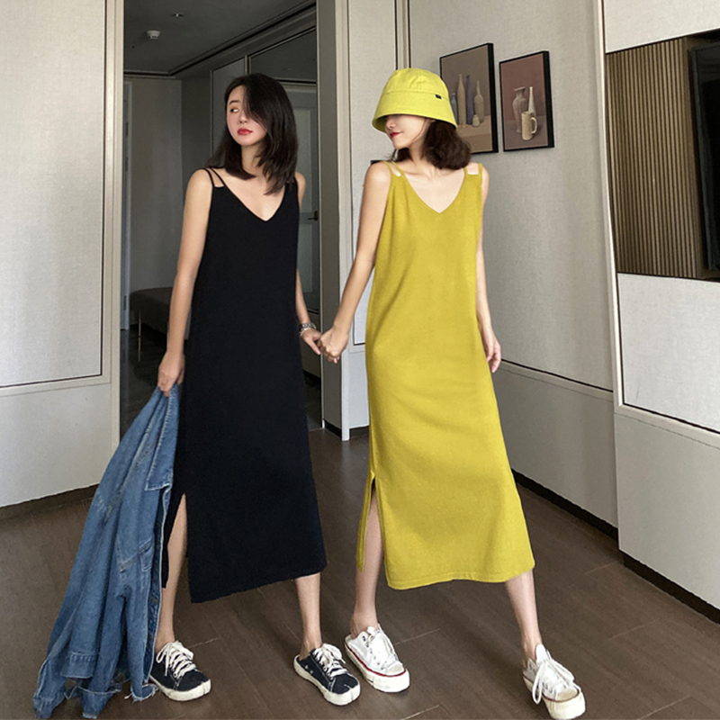 2020 new dress slimming design sense hem slit retro knitted suspender skirt boudoir honey dress summer