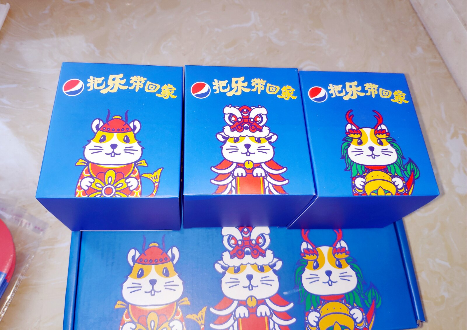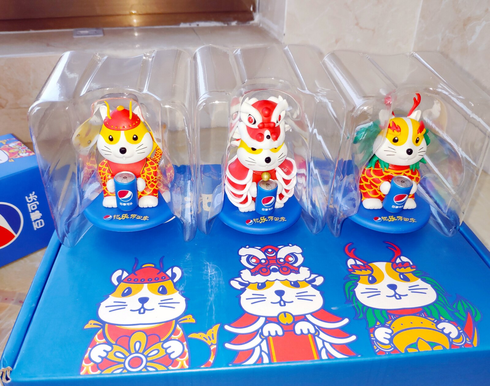 Year of the Rat Pepsi Happy Mouse Welcome Limited commemorative gift box Gold and blue cans Pepsi Happy Mouse doll set of 3