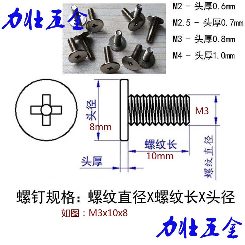 Nickel plated large flat head screw CM thin head screw flat head luggage screw M2 M2 5 M3 M4 spot supply