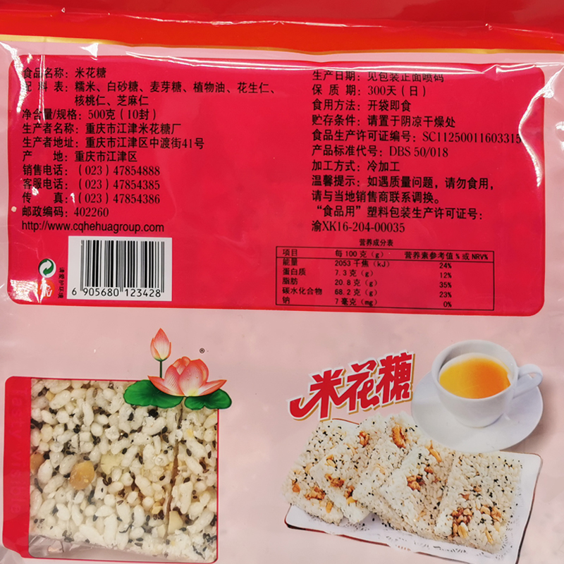 Chongqing Lotus Brand Jiangjin Crisp Rice Candy 500g Sweet Rice Crisp Traditional Pastry Snacks Original Rice Cake