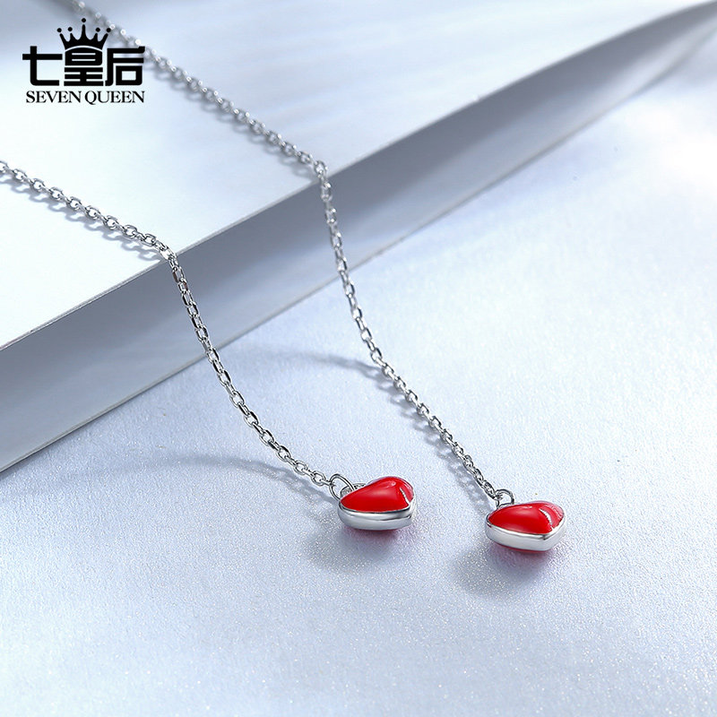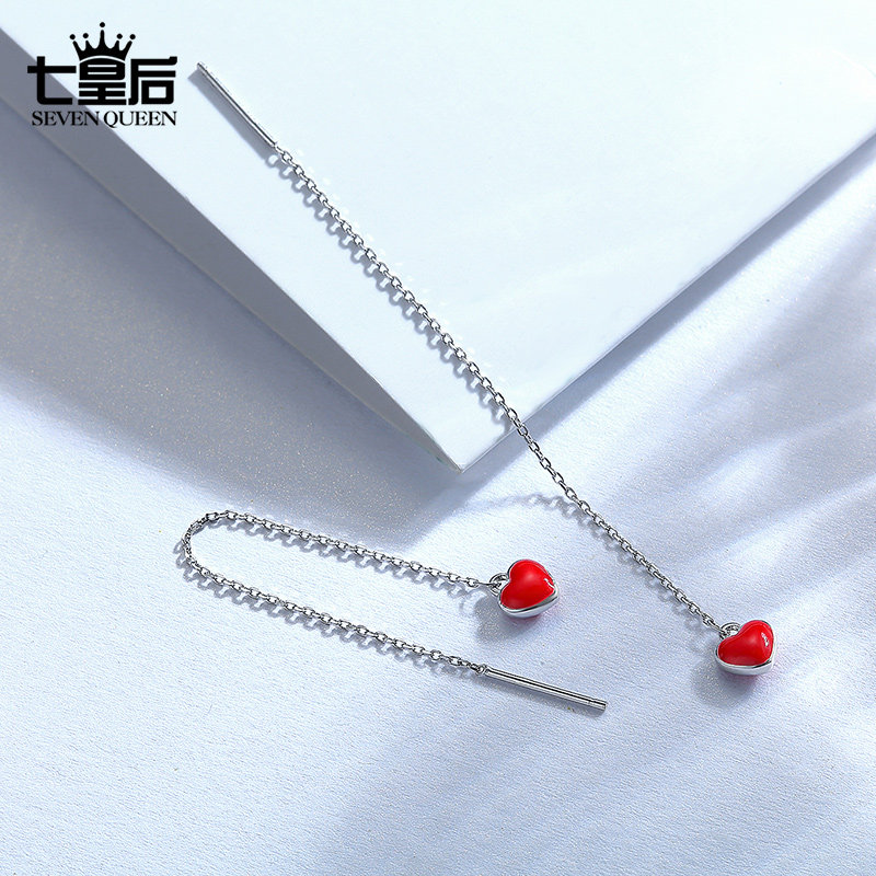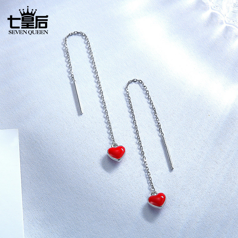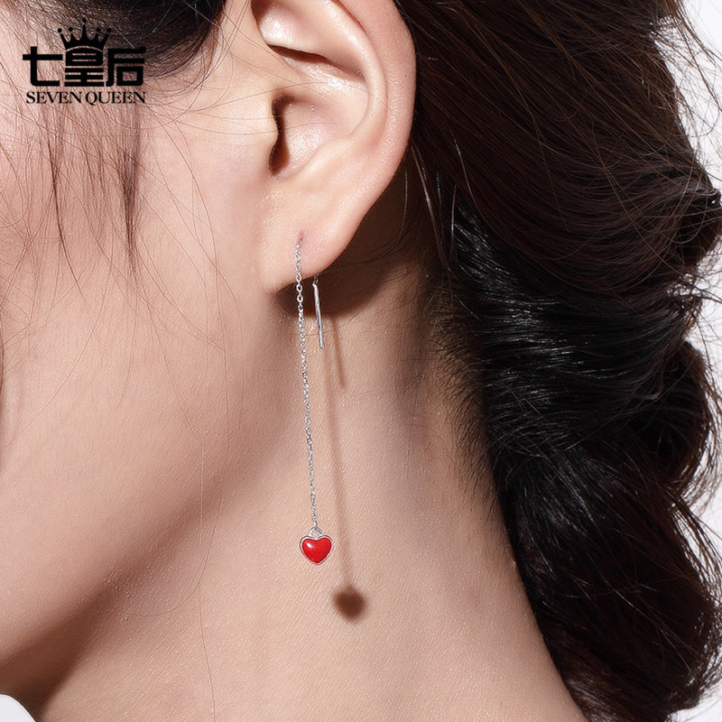 925 sterling silver love earrings Korean temperament long version girl heart ins earrings Simple personality wild drop earrings earrings