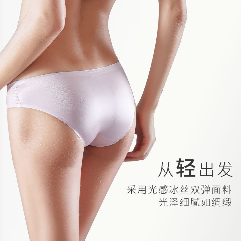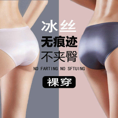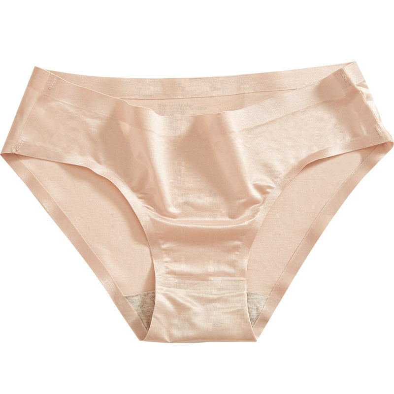Ice silk underwear women's seamless thin silk slippery one-piece nude wear hip-lifting girls pure cotton crotch sports yoga low-waist triangle