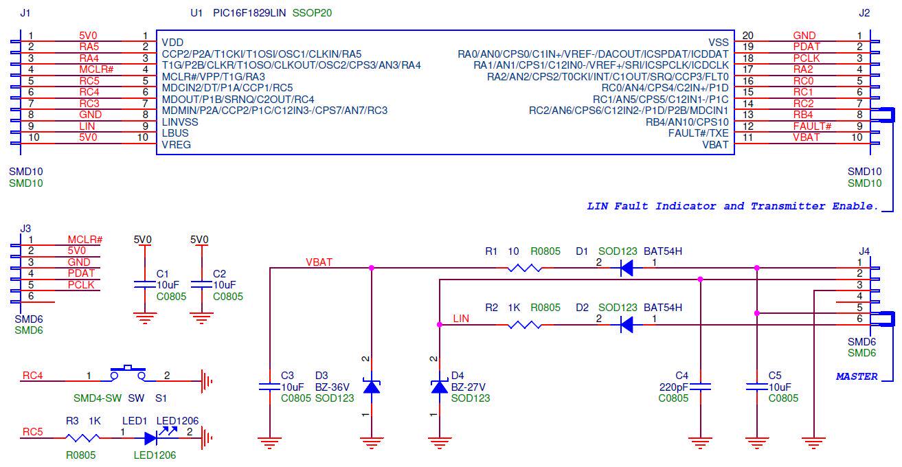 PIC16F1829LIN LIN Bus Development Board