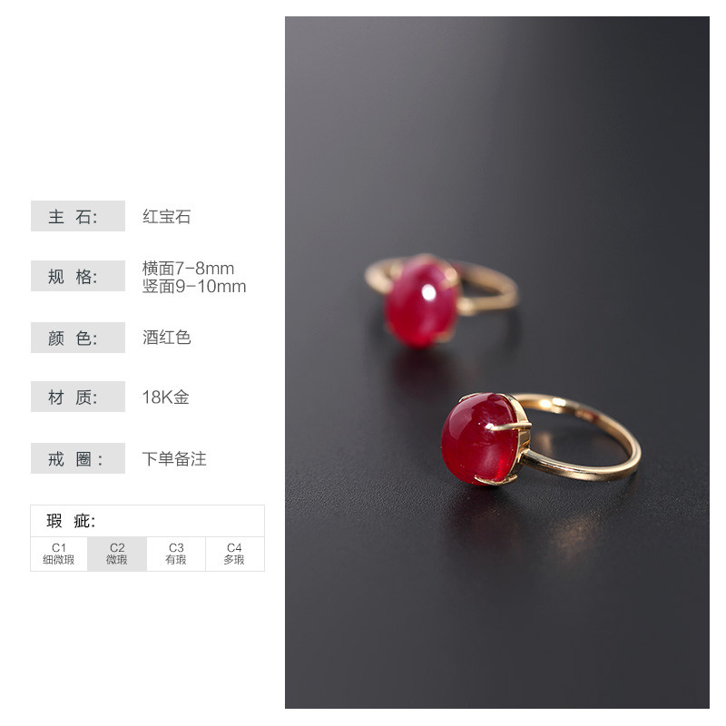 If Hua jewelry plain = large granular ruby ring girl 18K gold jewelry ring gift customization