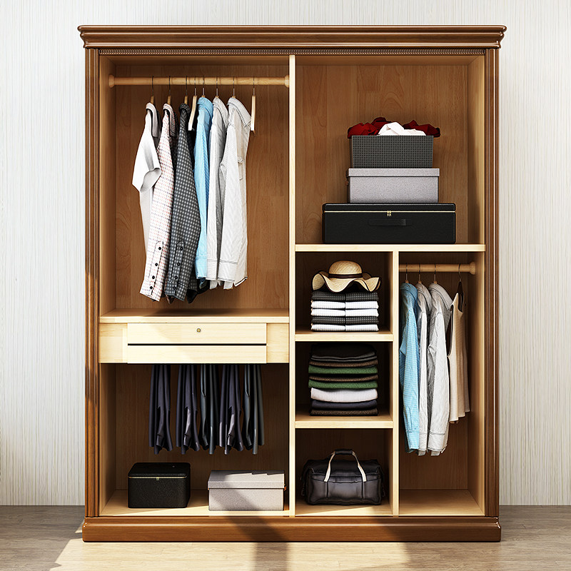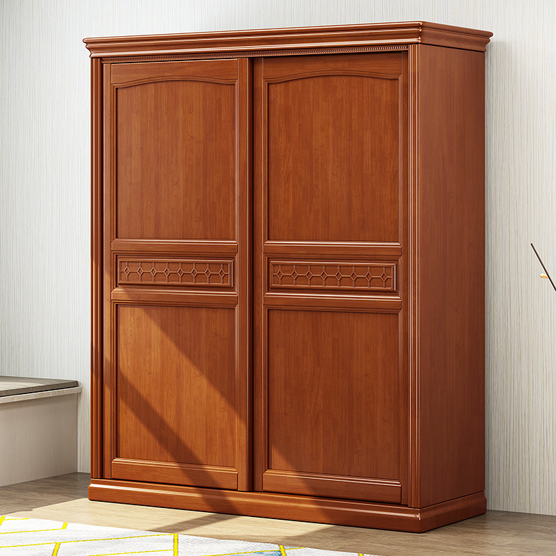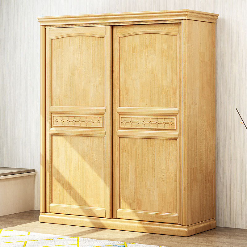 Solid wood wardrobe new Chinese style bedroom furniture storage large wardrobe sliding door modern minimalist rubber wood wardrobe