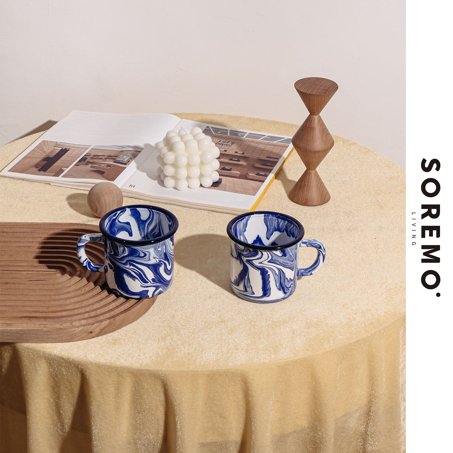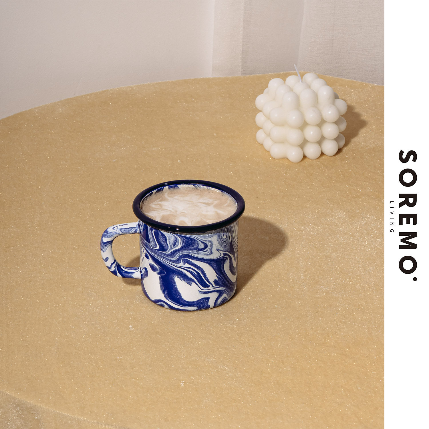 Sorenmo Original Cline Blue Enamel Cup Mark Cup Red Coffee Cup Red Coffee Cup Red Mark Cup Gift