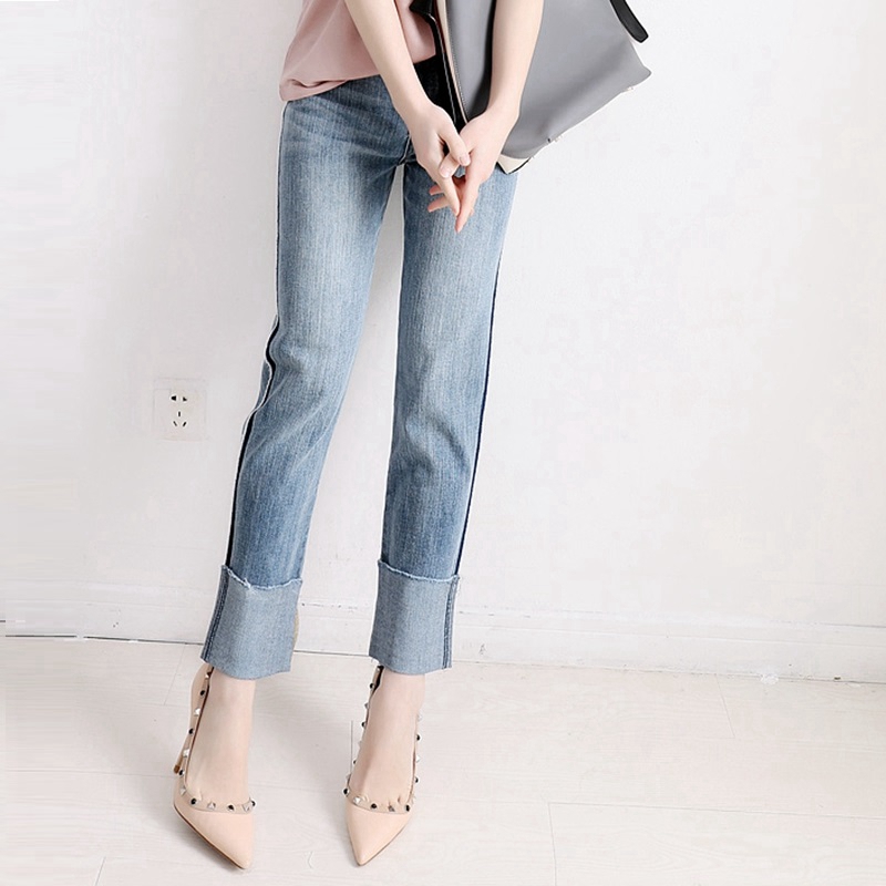 Elastic Jeans Woman 2022 Spring loaded with new high waist loose straight cylinder Pants Curl Pants Feet Repaired 100 Lap Smoke pants
