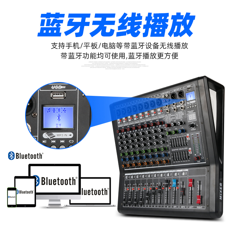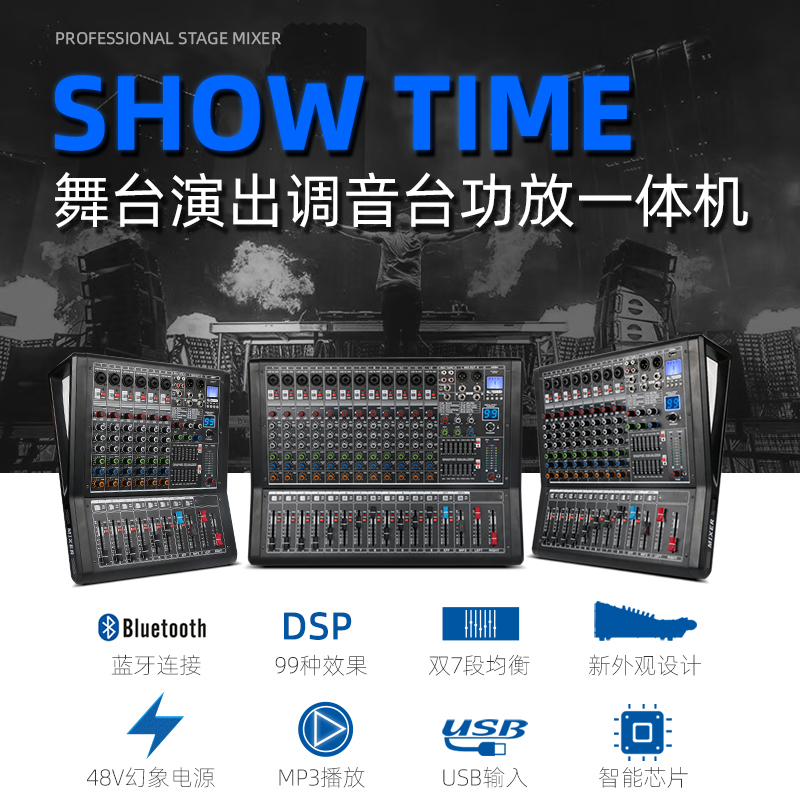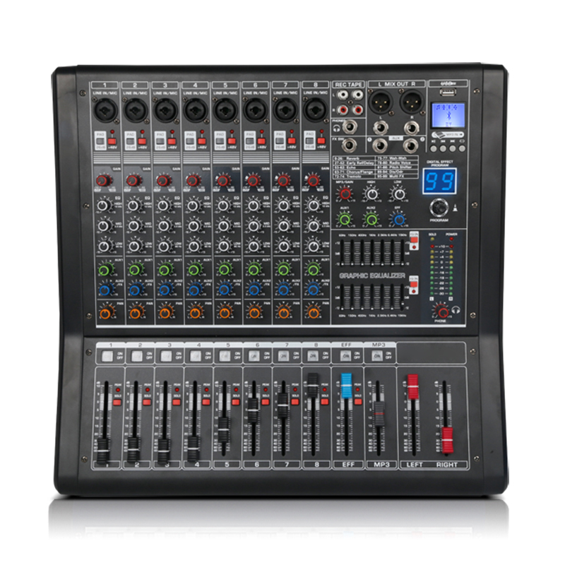 Large function multi-function stage professional bluetooth mixer with power amplifier All6 channels 8 channels 12 channels high power