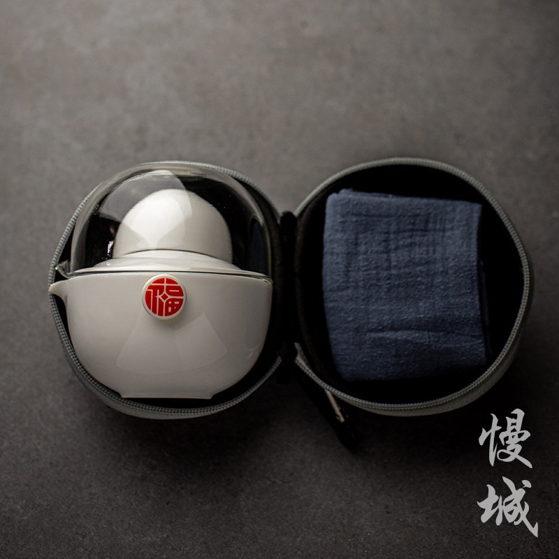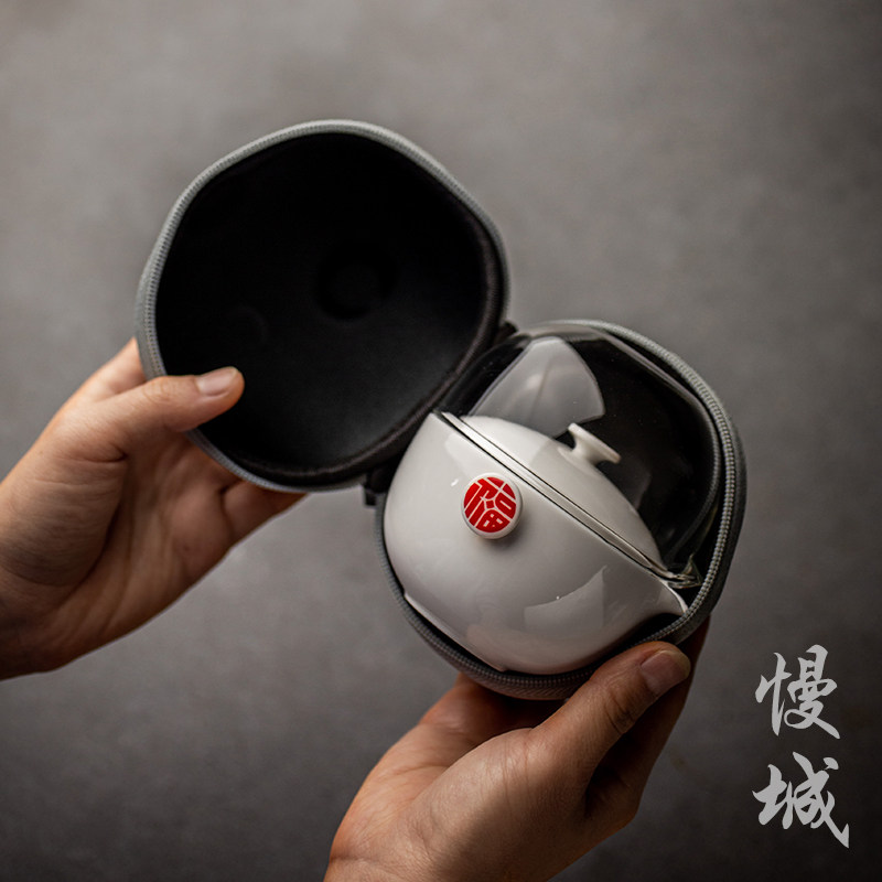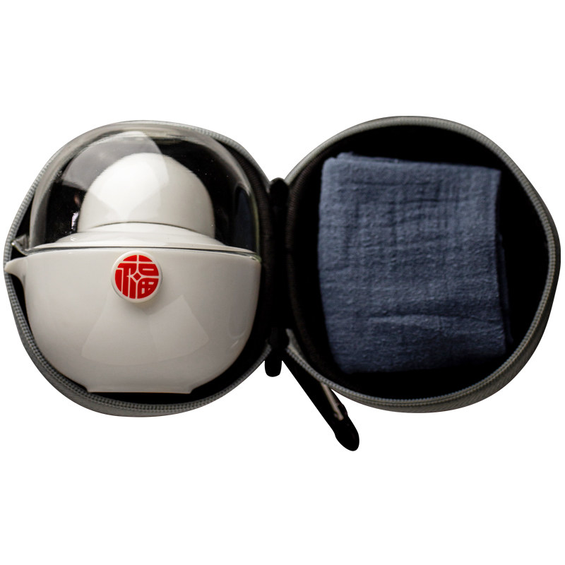 Quick cup Portable travel tea set Anti-scalding white porcelain ceramic one pot two cups glass Kung Fu tea set