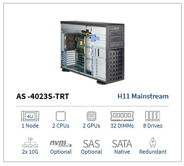 Supermicro 4023S-TRT Dual AMD EPYC Server Barebone for Emulation and High Performance Computing