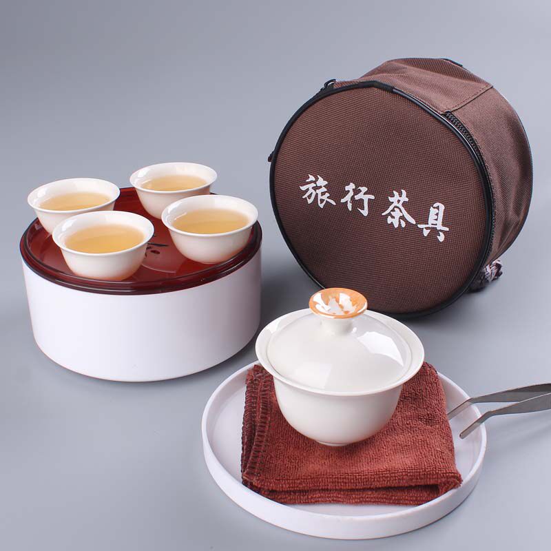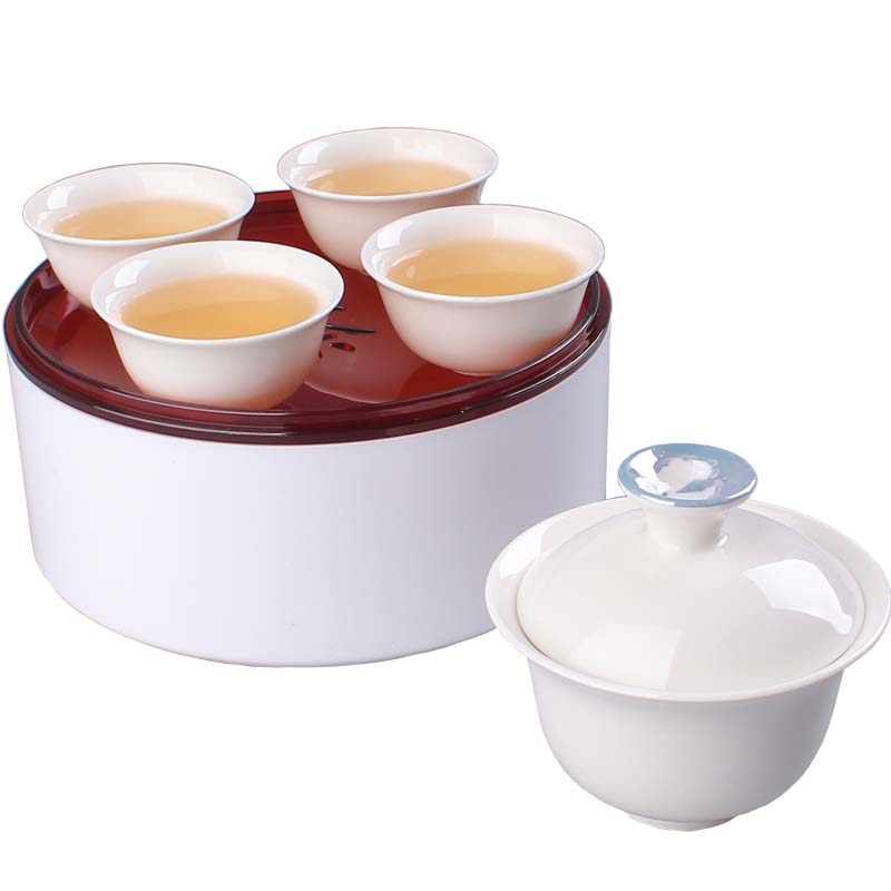 Chaoshan White Porcelain Kongfu Tea Sleeve Carry-on Work Cover Bowl Outdoor Travel Tea Tea Cup Portable Tea Cup With Tea Tray