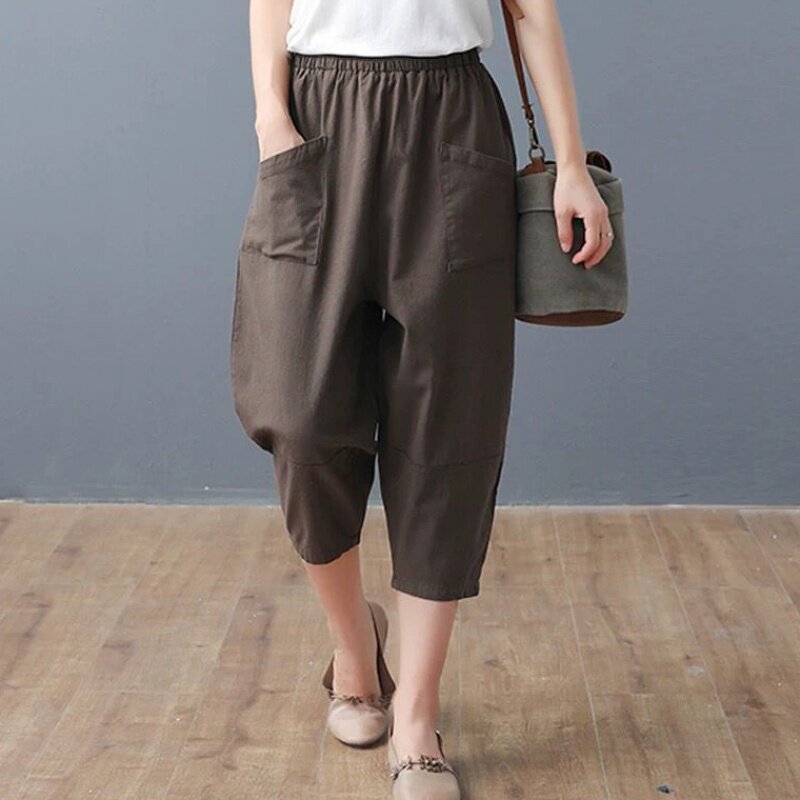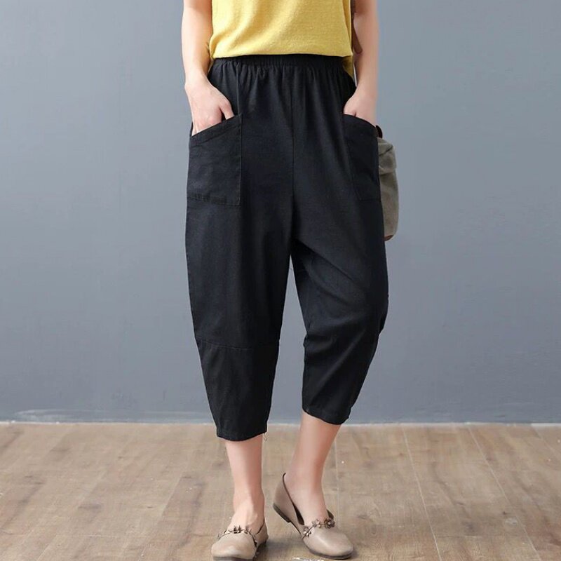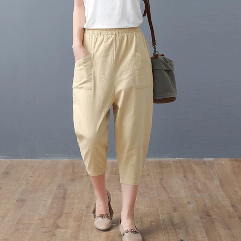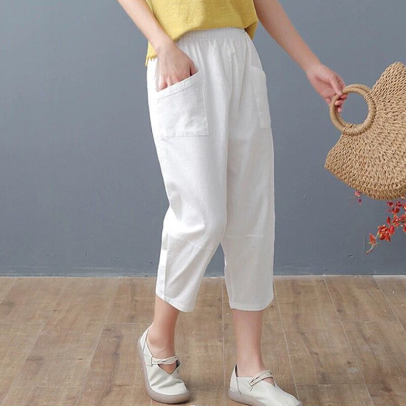 Summer thin cotton halen pants fashion loose waist seven pants wide wide leg pants