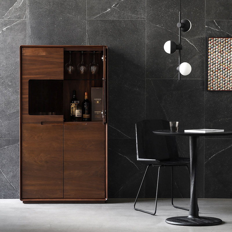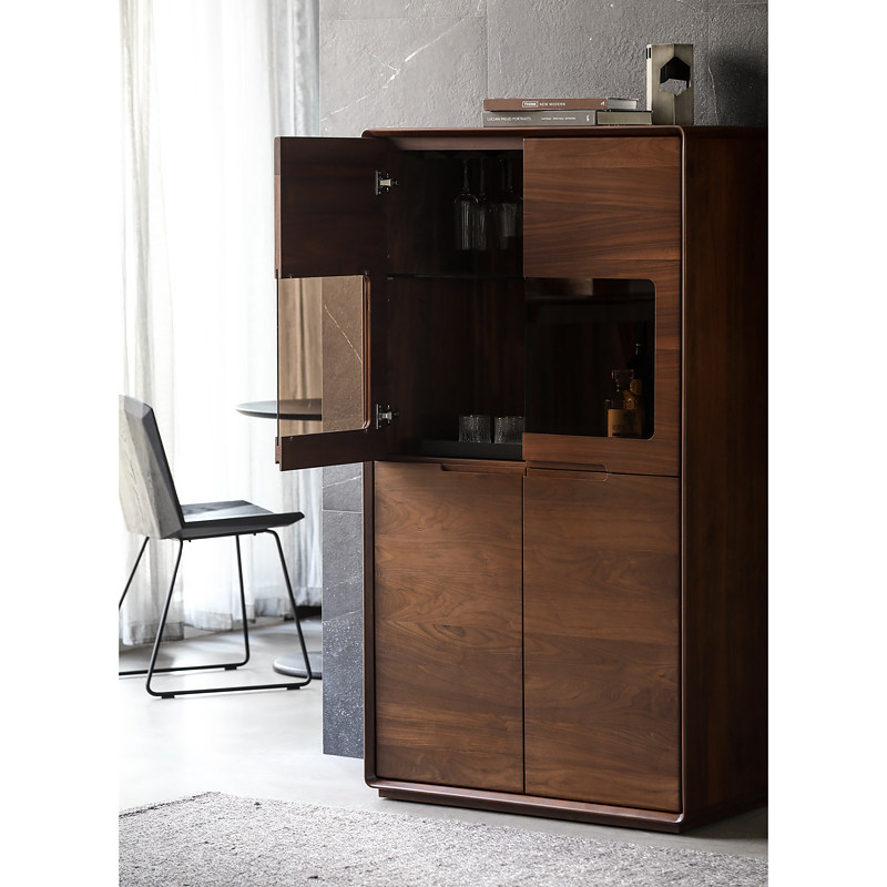 Nordic all solid wood wine cabinet simple modern black walnut dining cabinet Japanese living room glass tea cabinet display cabinet