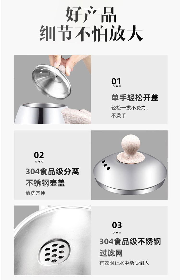 Long-nosed hemispherical electric water kettle 304 stainless steel household electric kettle automatic heat preservation fast pot 2.5 large capacity