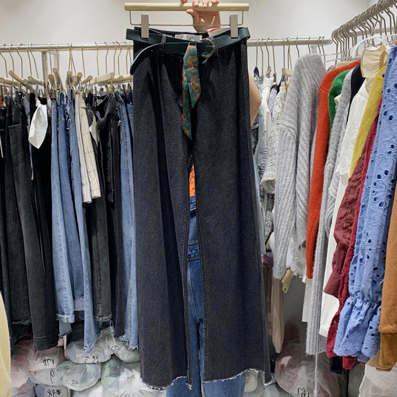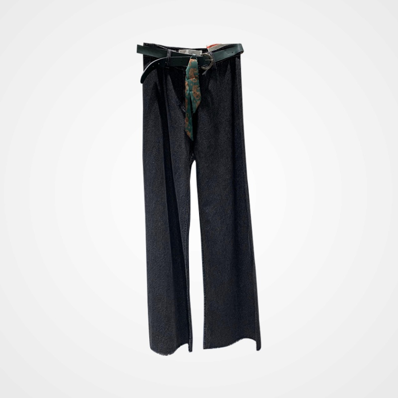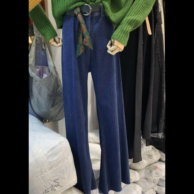 Blue high-waisted jeans women's spring and autumn new Korean all-match loose all-match wide-leg pants straight trousers with belt