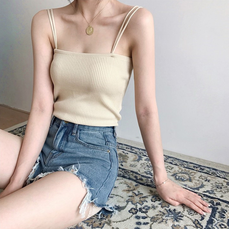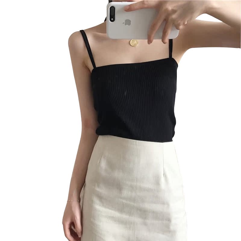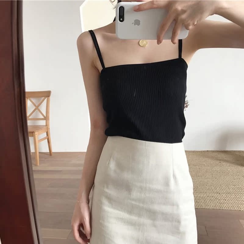 Port Taste Vintage Knit Vest Woman outside wearing black beating bottom inner lap Shoulder Beauty Back Sleeveless Double Harnet Jacket Summer Tide