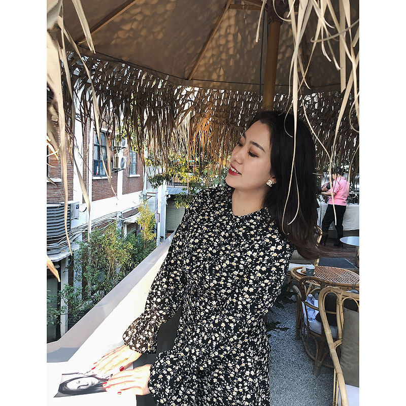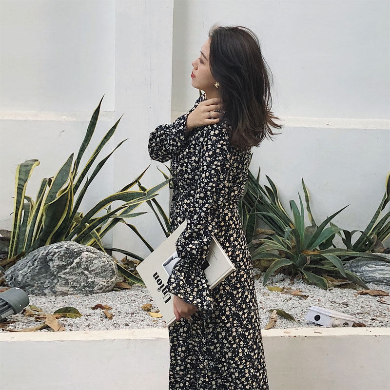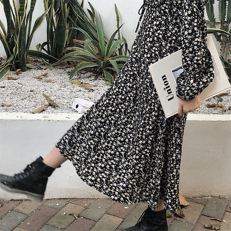 Large-yard women's new spring dress appears thin age-thin flowers shade meat and shade in the ocean gas long waist covering skirt