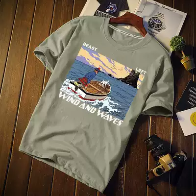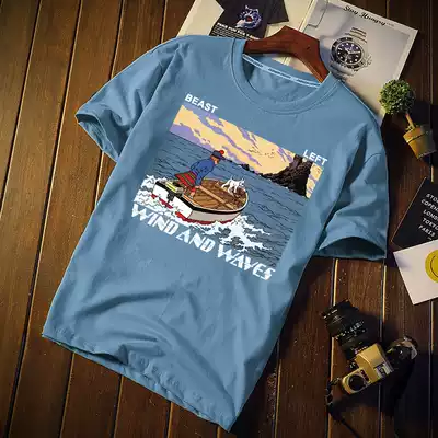 Short-sleeved T-shirt Men's ins trend pure cotton top clothes Japanese large size loose fat student black half-sleeved T-shirt