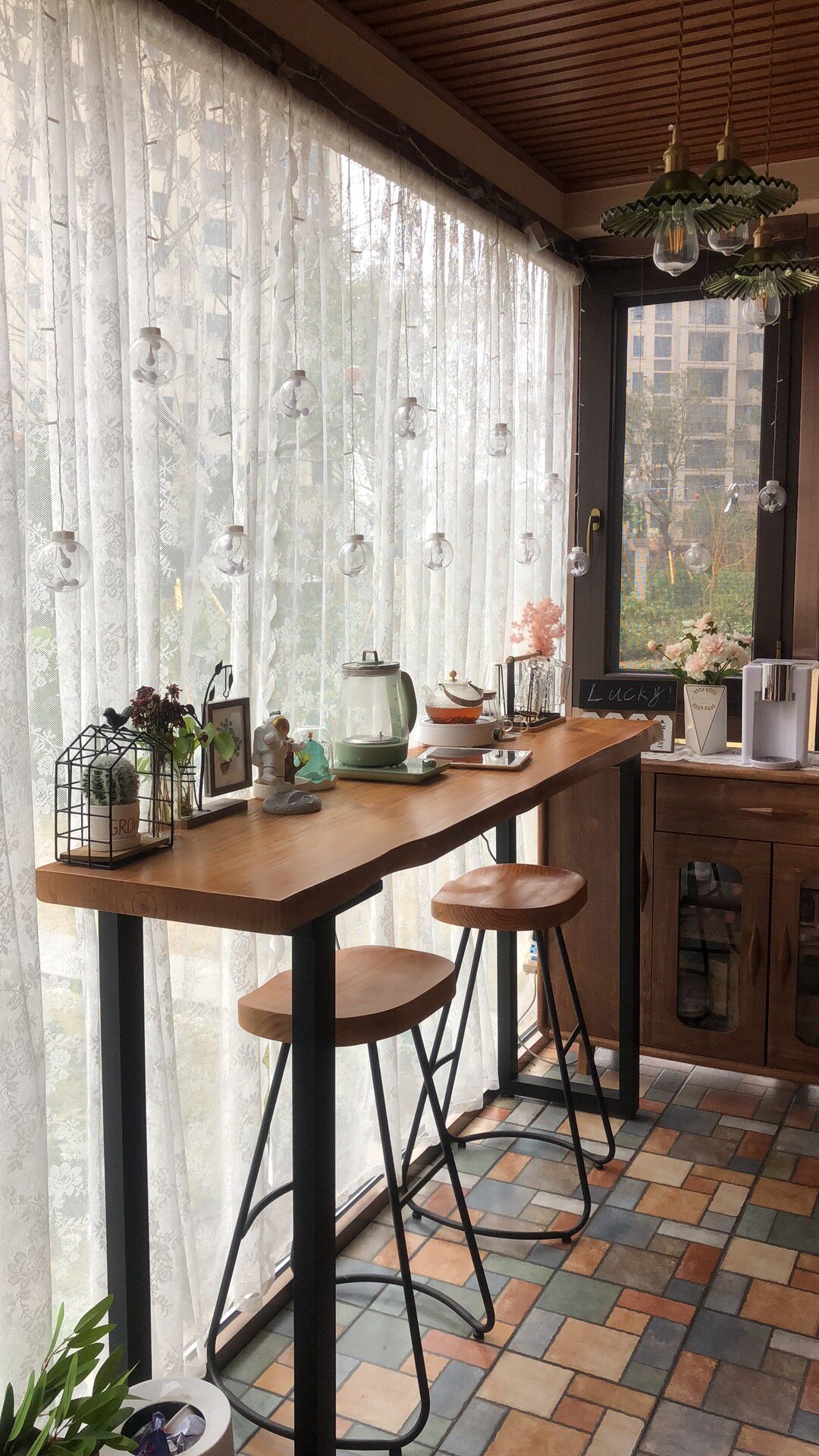 Bar table solid wood table and chair combination balcony against the wall high feet narrow table long strip against the wall small bar commercial bar
