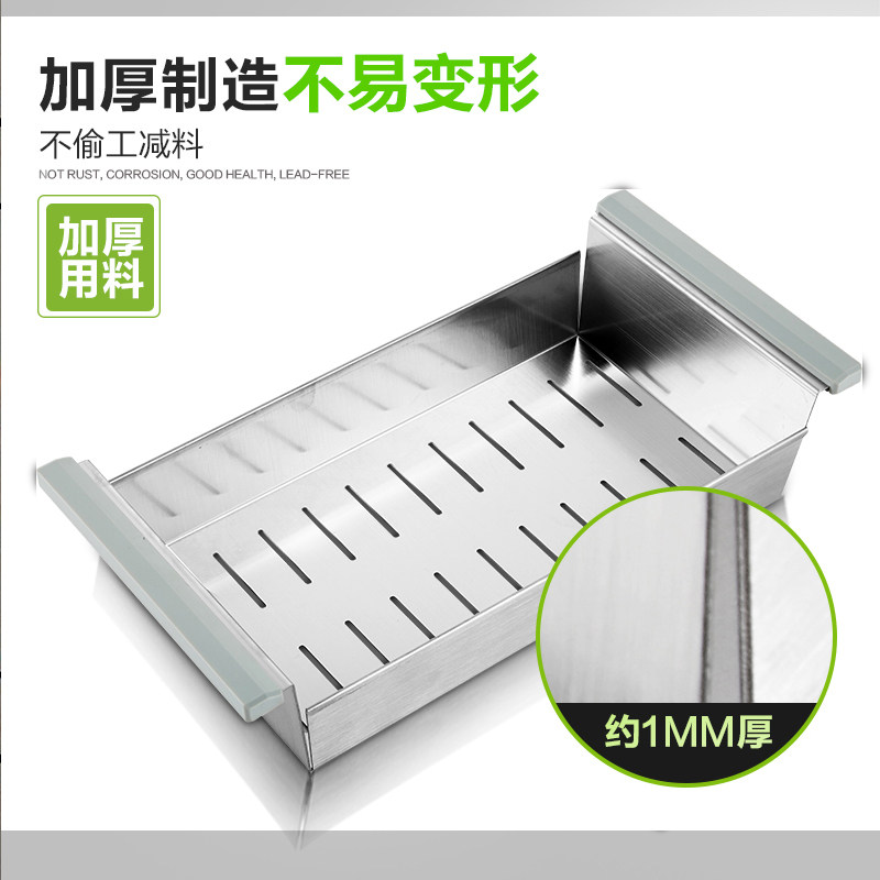 Kitchen manual sink drain basket Stainless steel European-style square drain plate Thickened filter basin