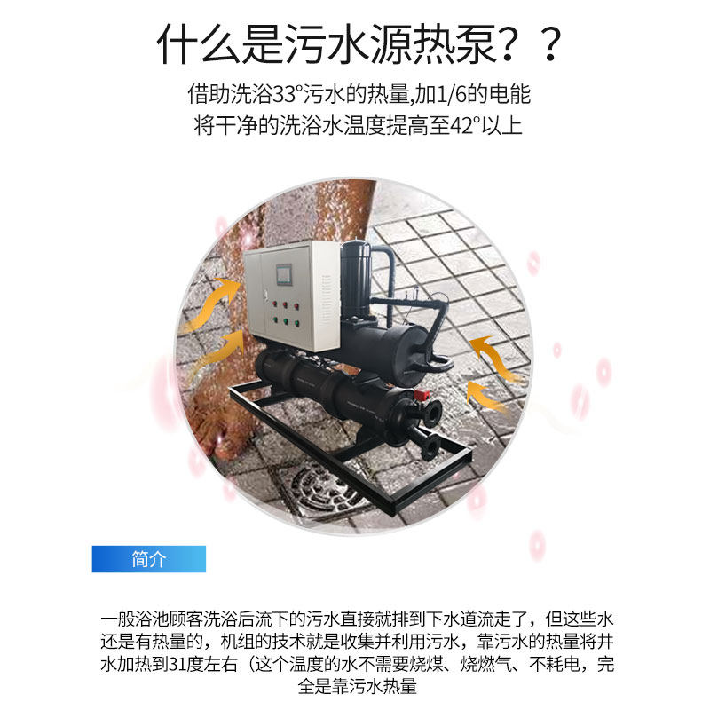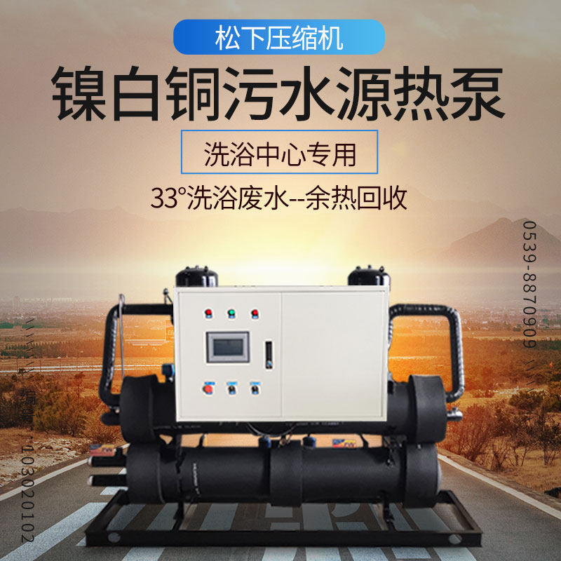 Sewage source heat pump unit Panasonic 12 hp compressor nickel white copper shell tube heat exchanger bath waste water waste heat recovery