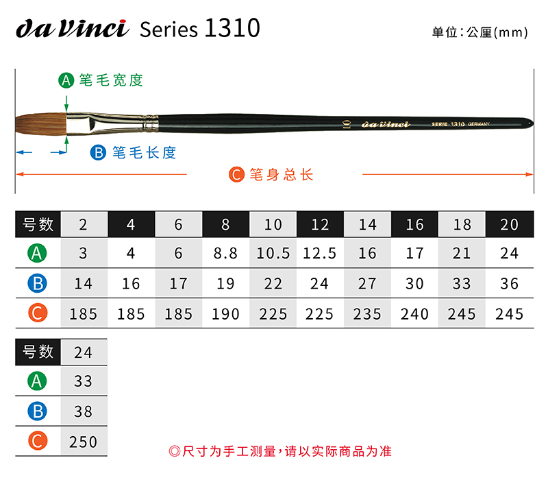 German da Vinci da Vinci 1310 Colinsky Redrubs with long flat watercolor pens