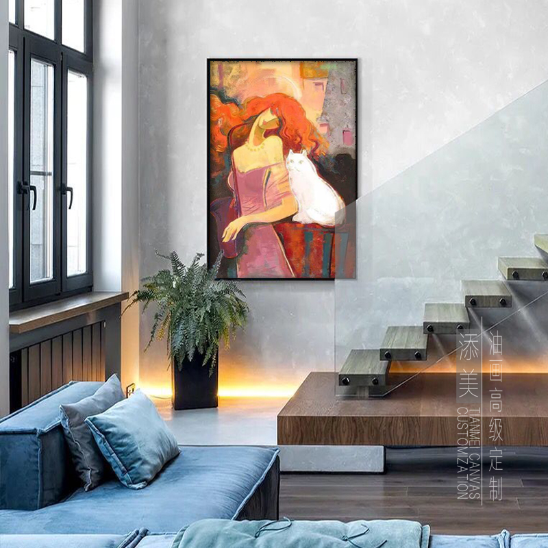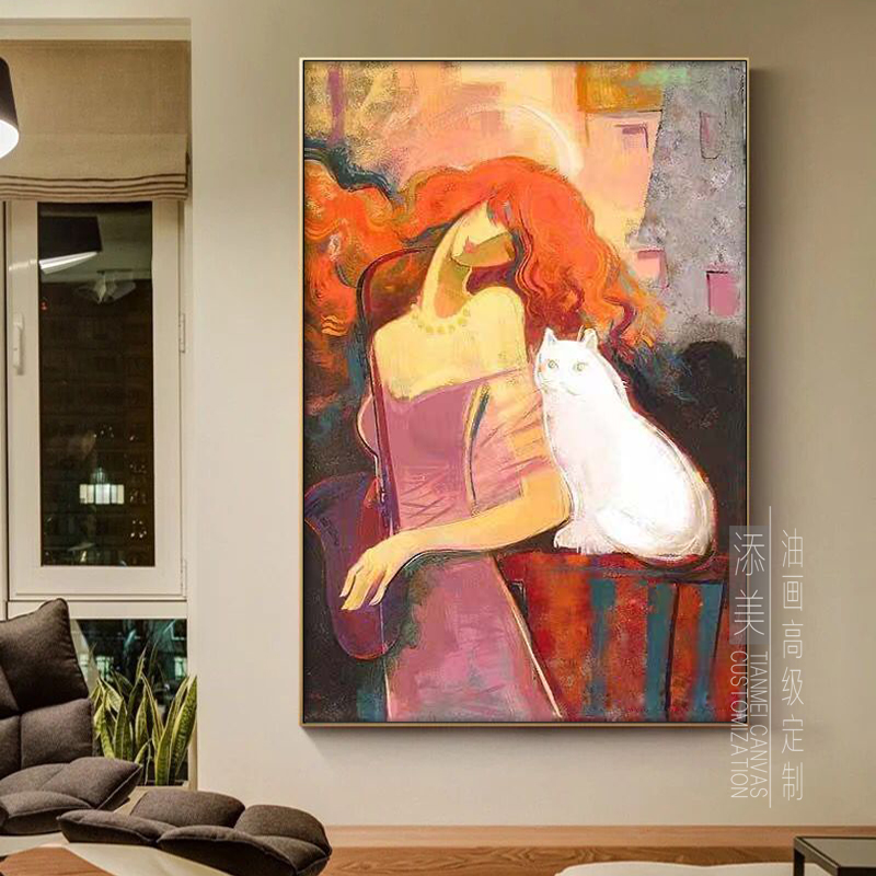 Pure hand-painted abstract Beauty character cat personality small crowdsourced light extravaganza Living room bedroom modern Nordic Decorative Oil Painting