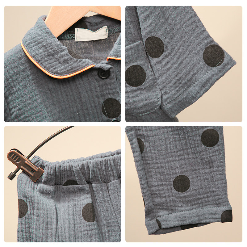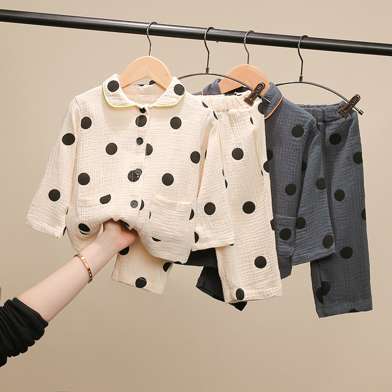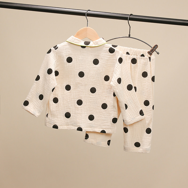 Children's pajamas spring and autumn suit girls cotton gauze girl home clothes baby dot air-conditioning clothes two-piece set