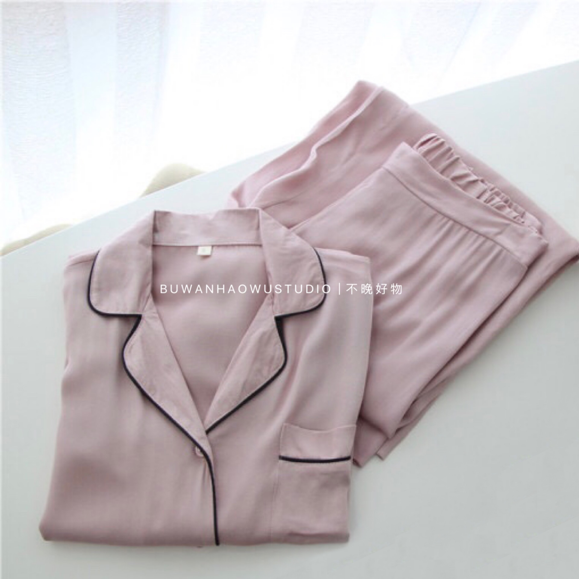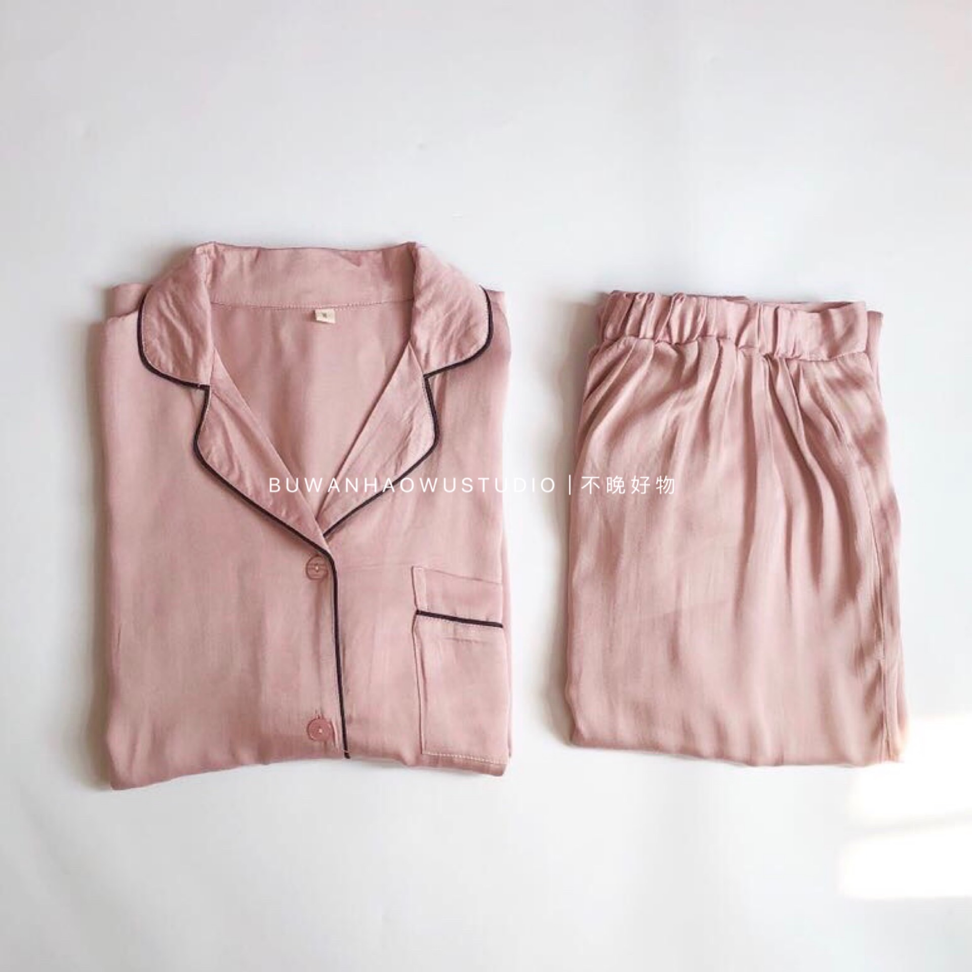 Foreign trade original factory) o home Morandi solid color premium satin super skin-friendly ultra-soft home clothes pajamas