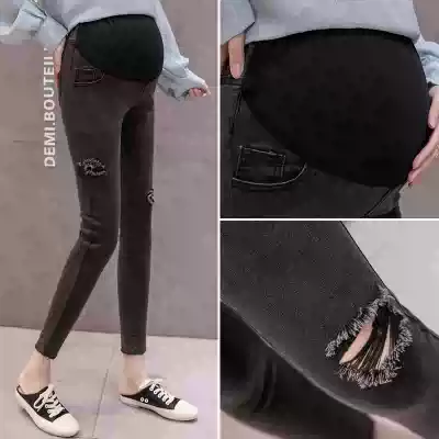 Pregnant women's early pants spring and autumn pants women's summer eight points early pregnancy autumn denim pipe pants hole tight fit