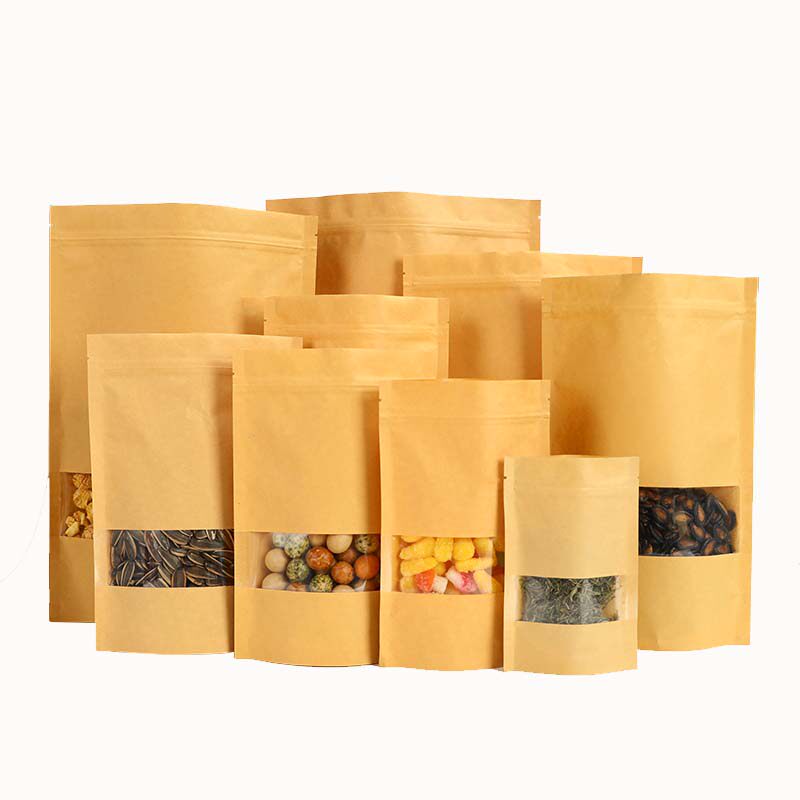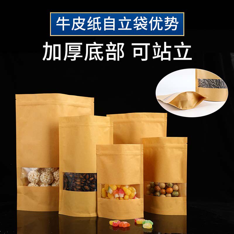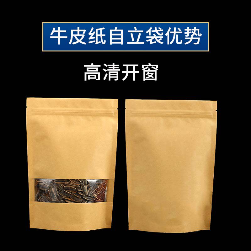 Transparent window 30 silk kraft paper bag self-sealing bag self-supporting bag food bag storage packaging bag melon seeds tea dried fruit