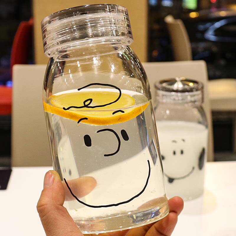 Han Edition Transparent glass personality lady water cup students can carry with lid nude cup heat-resistant tea cup