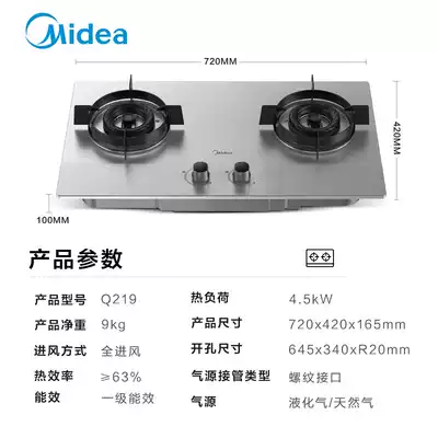 Midea gas stove official flagship store stainless steel gas stove double mouth gas stove household gas stove liquefied gas stove Q219