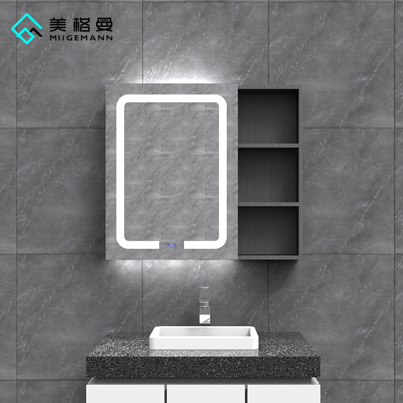 Megaman smart stainless steel mirror cabinet wall-mounted with LED light Bluetooth anti-fog bathroom simple bathroom mirror cabinet