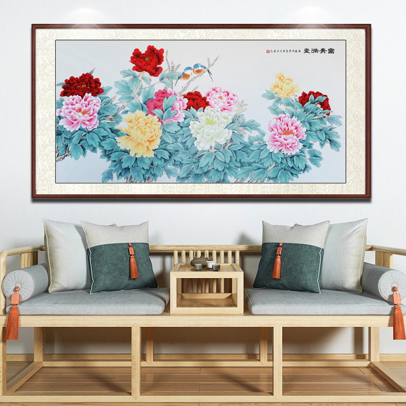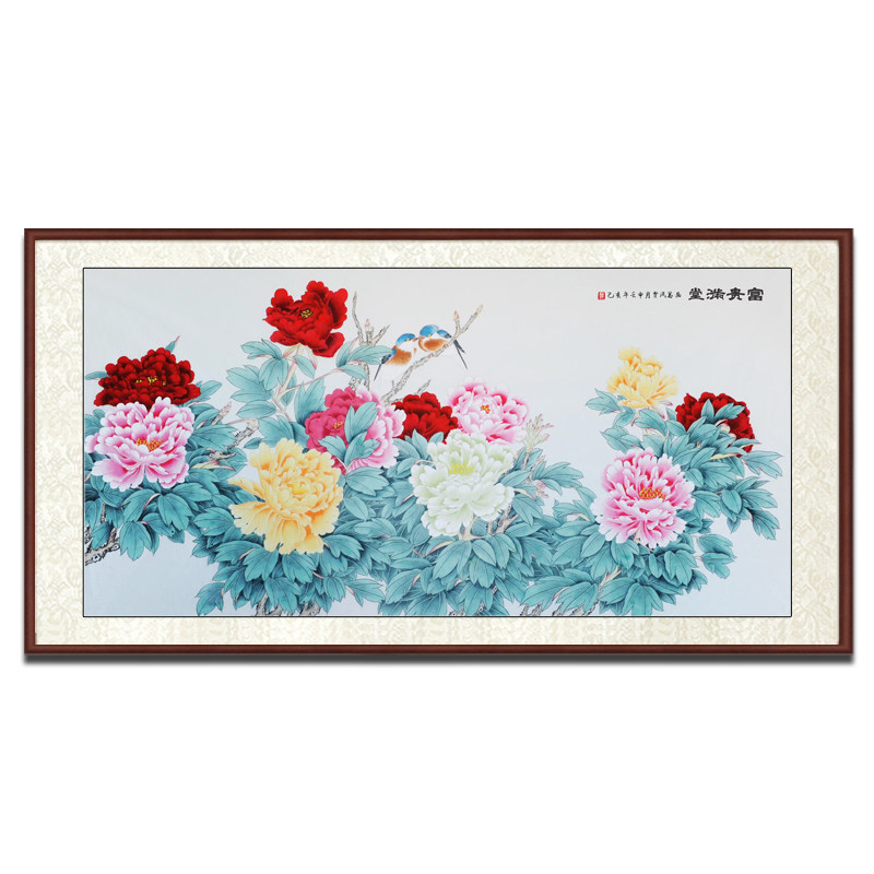 Renowned virtuoso pure hand painted flowers open rich and expensive country painting Chinese living room decoration painting work pen peony murals bedroom hanging paintings