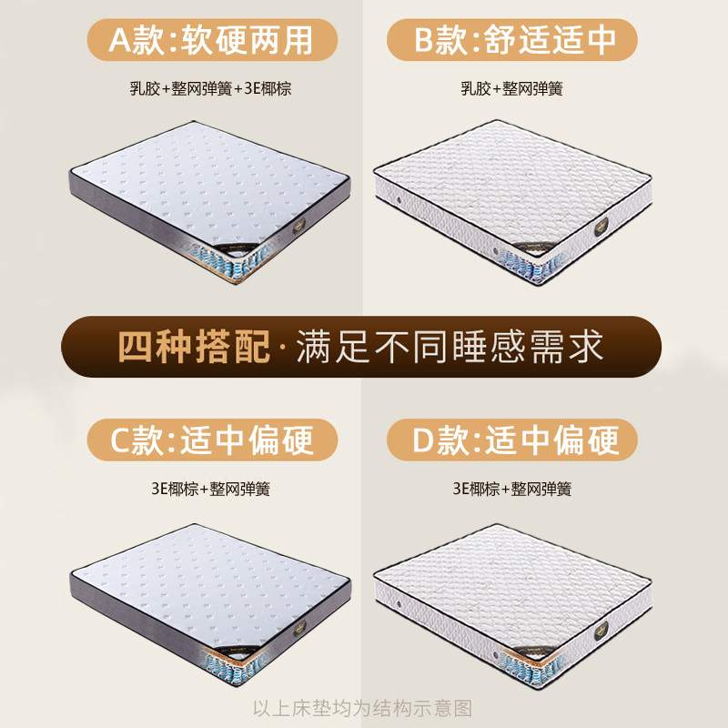 Type A (soft and hard, 22cm thick) aloe vera fabric, natural latex, whole net spring, environmentally friendly coconut palm Type C (moderately hard, 20cm thick) aloe vera fabric, environmentally friendly coconut palm whole net spring