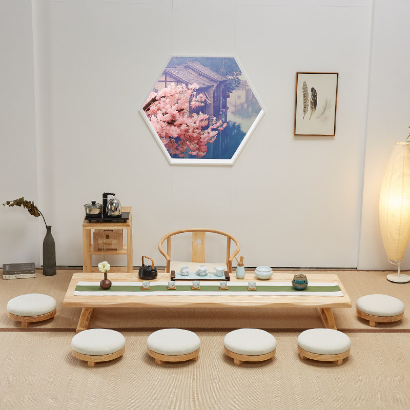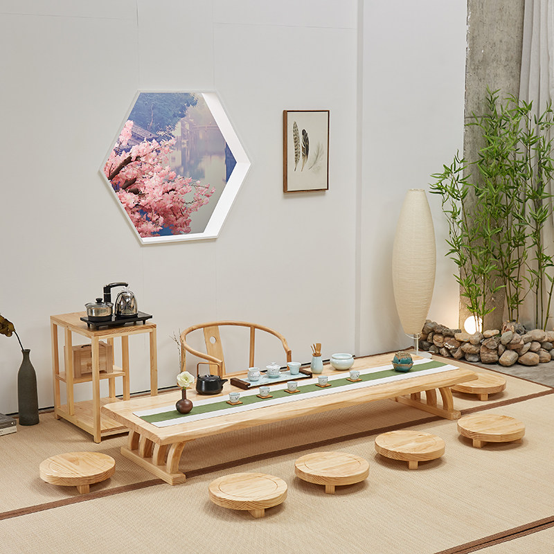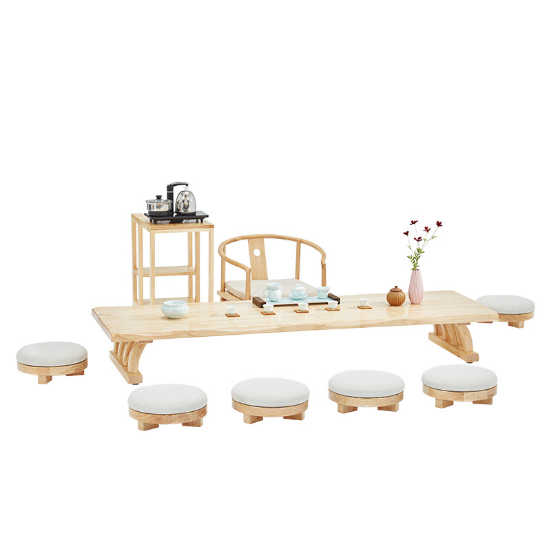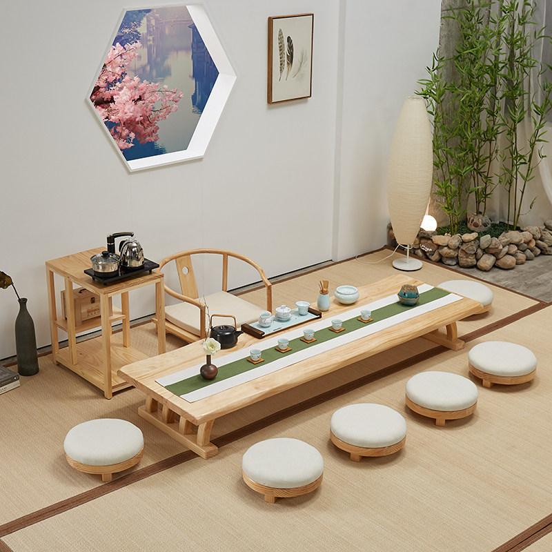 Japanese tea table chairs solid wood tatami tea table new Chinese sitting ground tea table Zen long low table bay window table Kang table