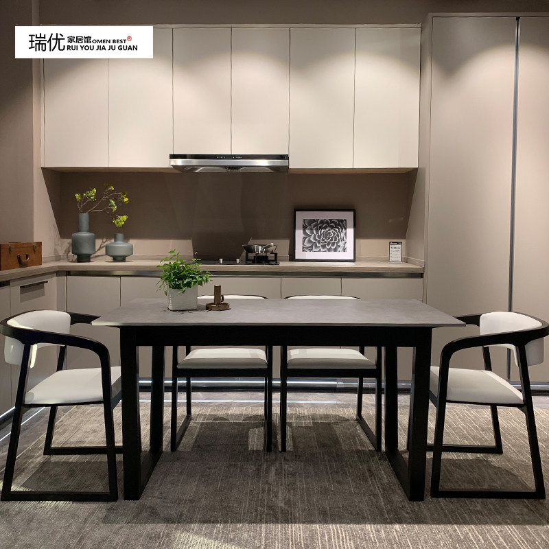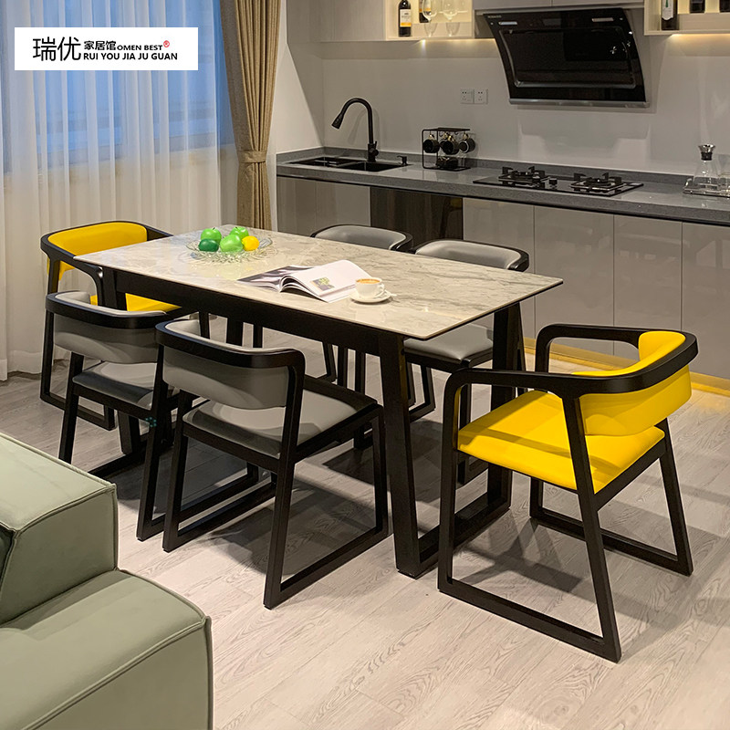 Nordic imported rock board dining table and chair combination modern simple household solid wood small apartment white wax wood dining table negotiation table