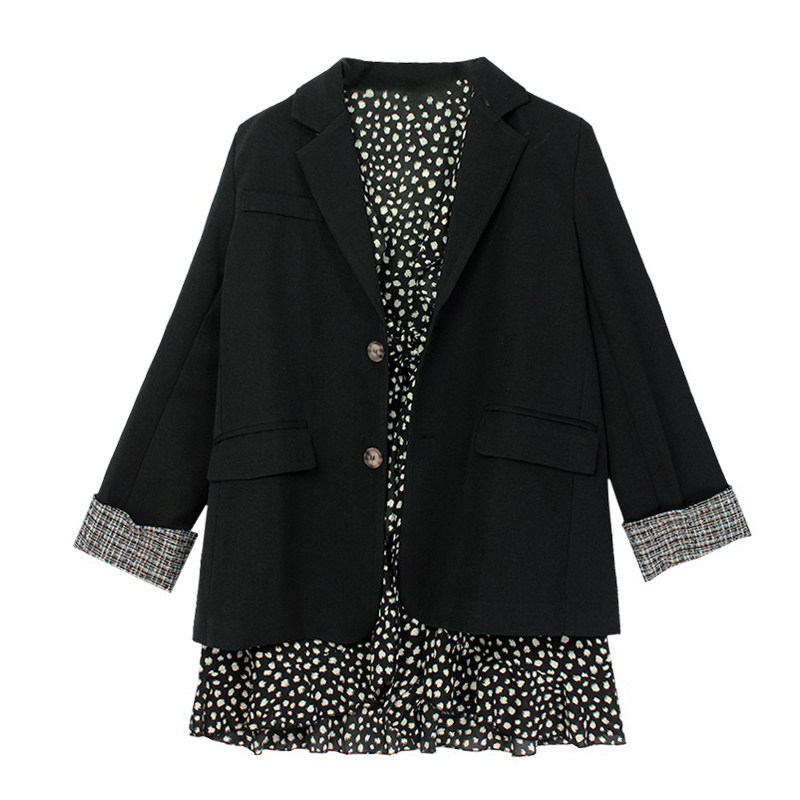 Black Phara-style Retro Wave Dot Ocean Dress Women's Spring Summer 2021 New Long Sleeves Slim Woman Taste A Character Dress