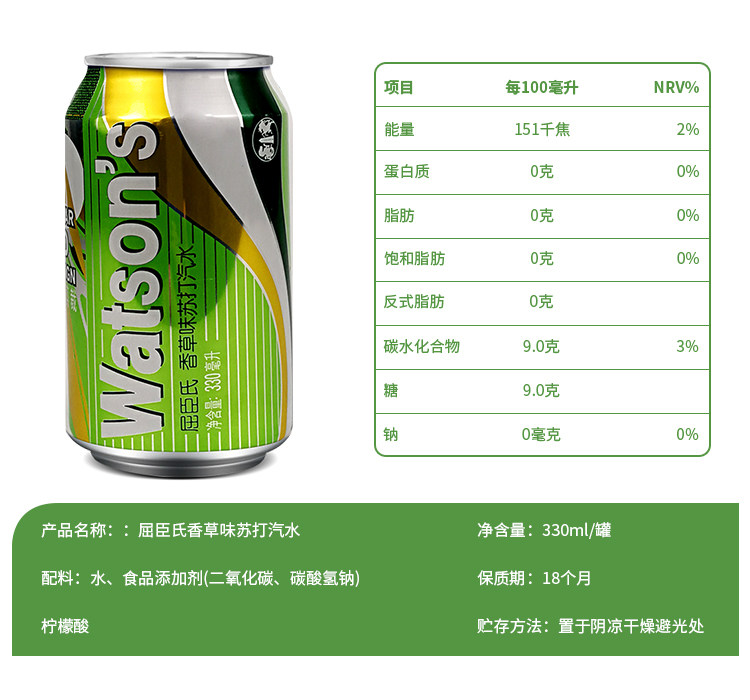 Kychen Watsons Vanilla Taste Soda 330ml * 24 Bottles Whole Box Cocktail of Drinking Drinking Drinking Water